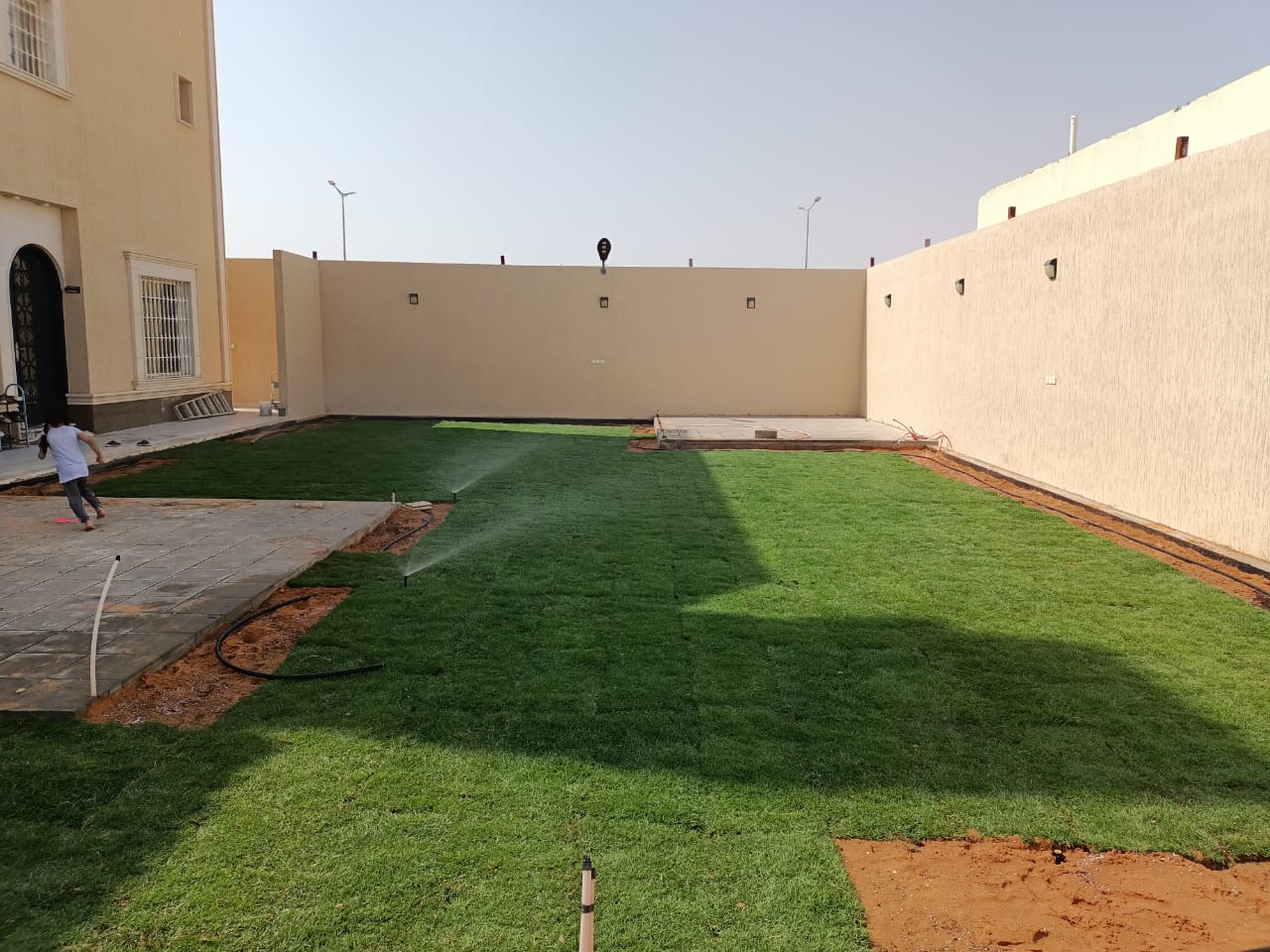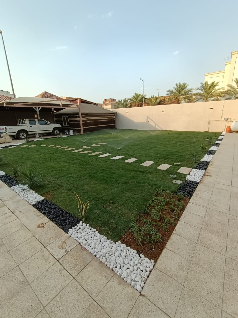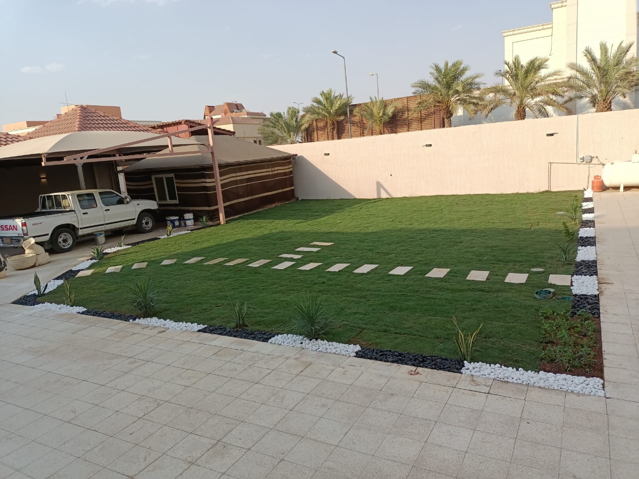 تركيب عشب طبيعي وقص الاشجار